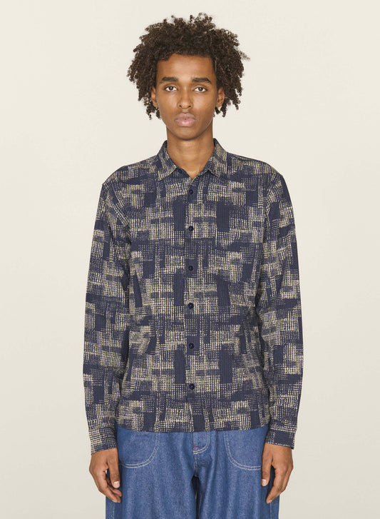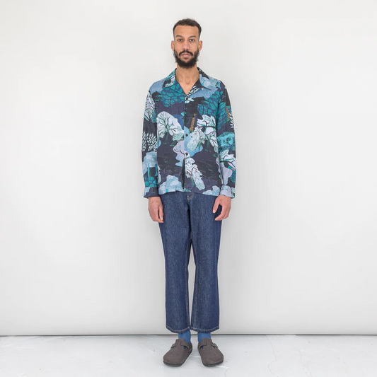 Folk LS Soft Collar Shirt - Forest Print Navy TH