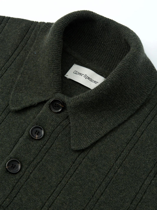 Oliver Spencer Pablo Knitted Polo Shirt Green