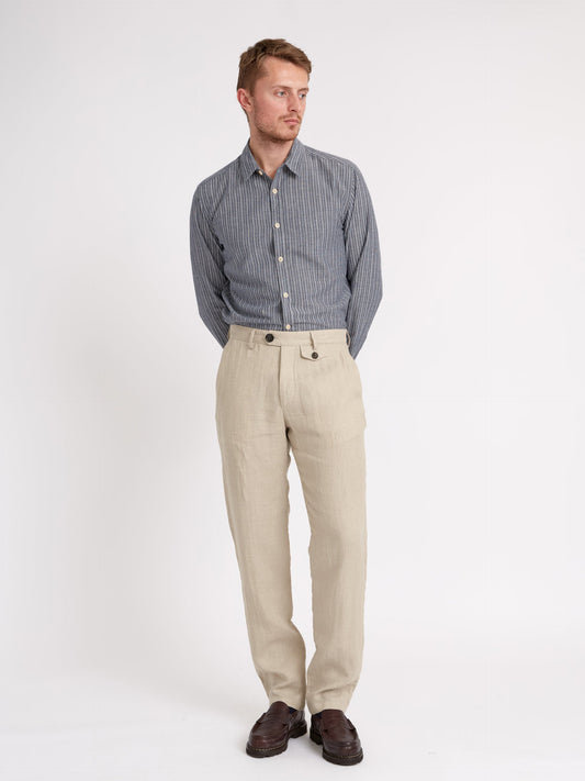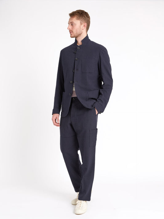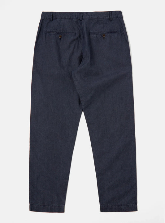 Universal Works Military Chino In Navy Linen Mix Puppytooth