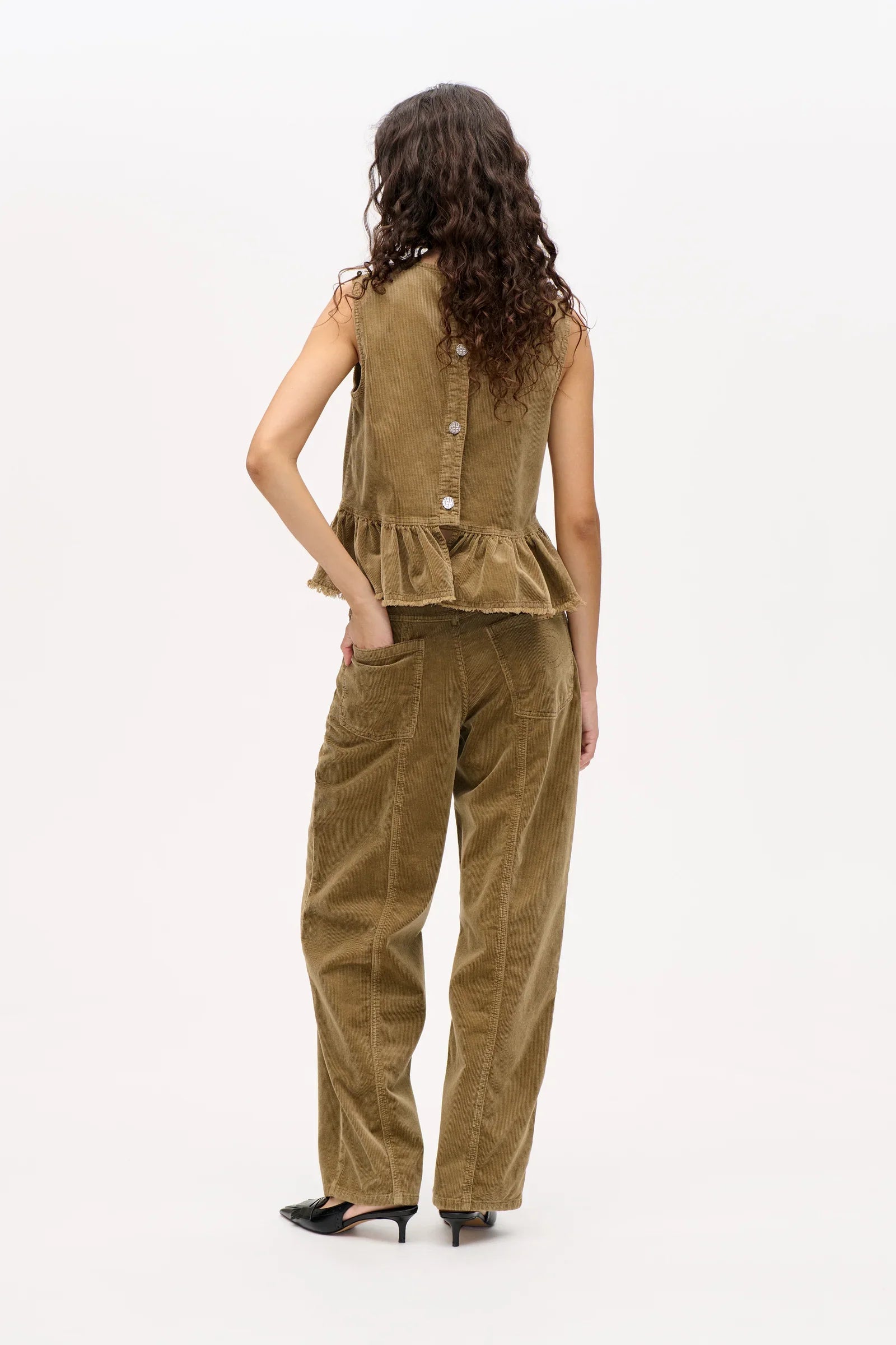 The Nara Trousers are one of our bestsellers - and we understand why, as the Baum classic is made to fit effortlessly into your wardrobe. The timeless trousers are made of a soft corduroy and designed with high waist, wide legs and a visible seam down the front and back. They are easy to style with one of our tops or t-shirts and are a trusty companion throughout your day.