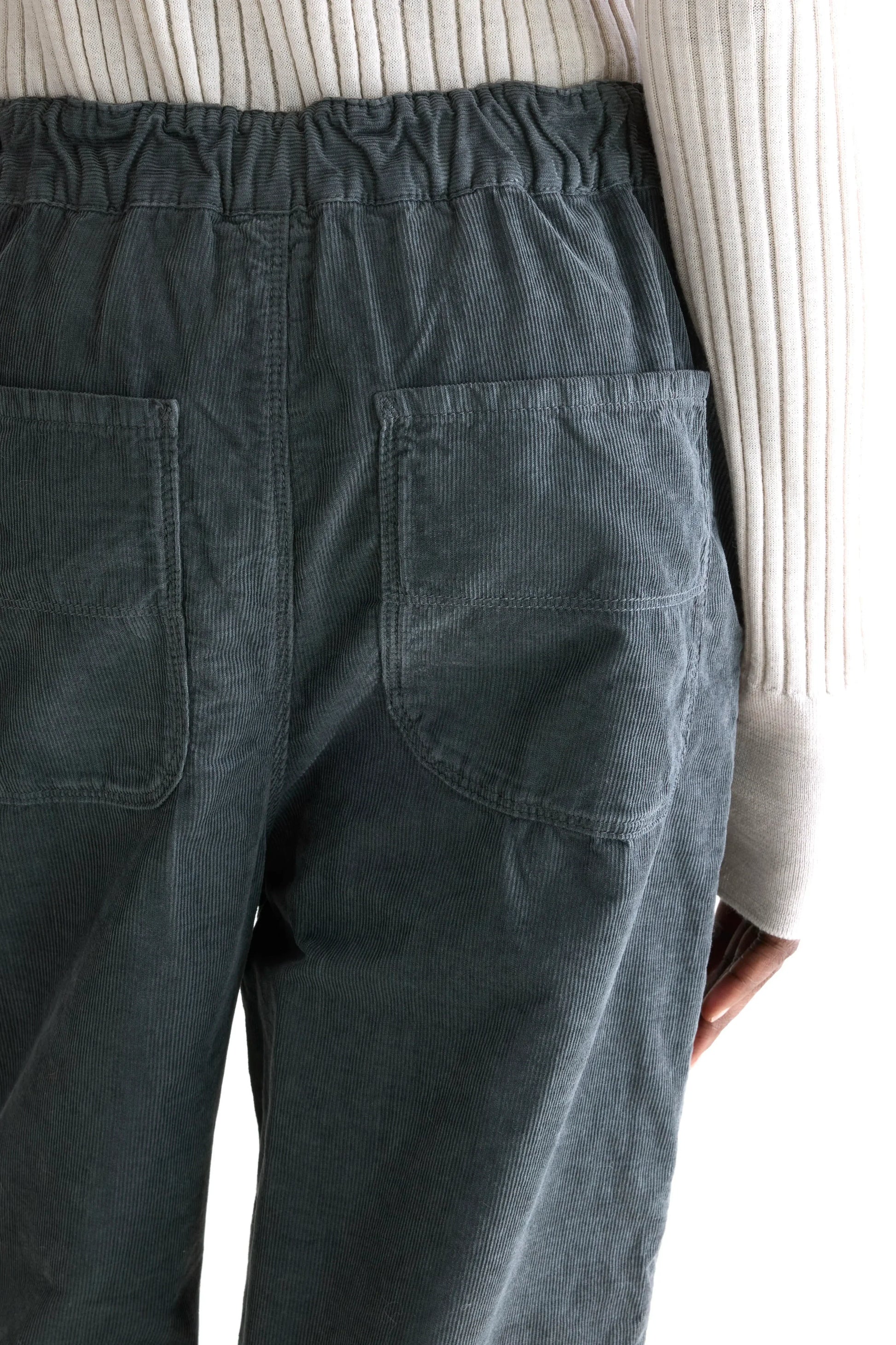 Relaxed trousers with an elasticated back waist in dark grey babycord.